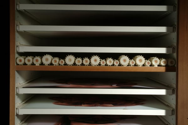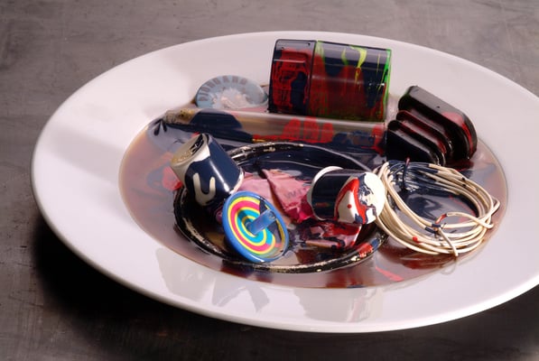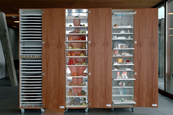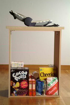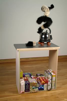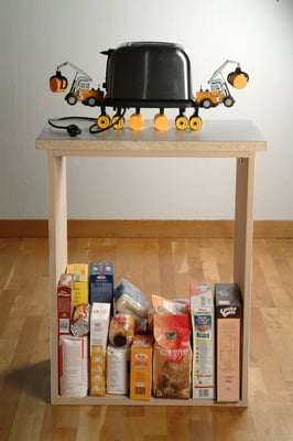 These words spoken by Þórdís Alda Sigurðardóttir tell us a lot about the temperament of her work. She evokes a sense of times long passed but also connected to the passing hour. In her quest for material, Þórdís collects utensils from her environment, both those that have aged into old scrap iron that has almost been welded into the landscape, and personal objects retrieved from acquaintances. She picks up these objects and examines them, places them in a new context and then connects them back into time. All these items have one thing in common: they have been left behind by us, whether it be out in nature or at the bottom of a drawer. Their role is finished, they’ve been abandoned but they’re still with us, dispersed in our environment. They raise questions about our consumer society and its exponential growth. This rapid consumption leaves traces that become more and more noticeable as time goes on. If we look forward we realize that consumption speed will only increase, a message transmitted to us from the present.Germination, Overflow and Kitchen Life (2004) are all on the subject of the relationship between man and nature, and on the effects of man’s consumerism on nature. The traces man leaves behind, how he weighs down the earth with his rich and rapid consumption.