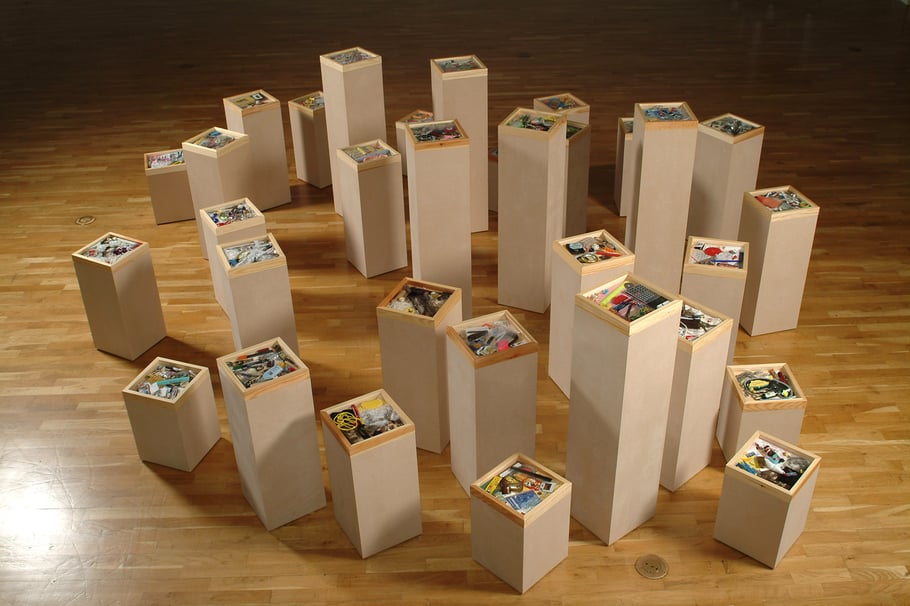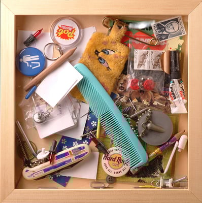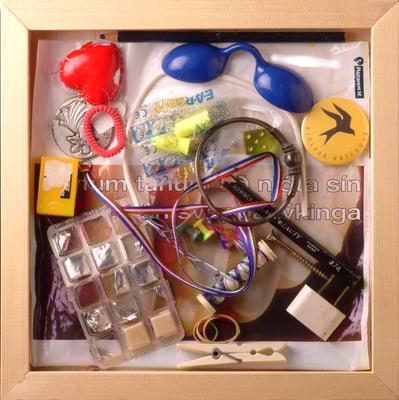 Thordis Alda Sigurdardottir collects signs, traces and all sorts of labels that define the lives of individuals and which accompany these individuals for a time. In all their randomness, they hold a similarity, while the subjects give this mish mash of things offered on the table of their lives their own particular colour and characteristic. The artist does not look at those little worlds from adistance. She is hot on the heels of the subject, like a tramp that picks up things that used to belong to that person, before they became unnecessary. There is no such thing as dead objects. Large and small objects and all sorts of junk and unnecessary