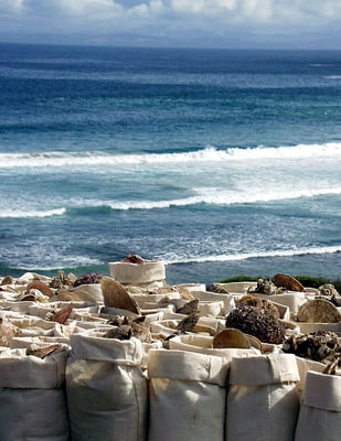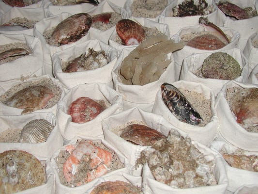 Árið 2001 var um margt merkilegt ár. Þá gerðust óvæntir atburðir sem mörgum finnst hafa breytt heimsmyndinni og eru enn í fersku minni manna. Þá fóru líka nokkrir tuga hörpuskelja í ferðalag til Ástralíu, en þær voru hluti af myndlistarverki, nánar tiltekið til Tasmaníu og seinna til Sydney. Ári síðar voru þær aftur mættar heim til Íslands og hafa hvílst í dimmum kassa síðan. Nú árið 2019 verða skeljarnar viðraðar á Snæfellsnesi , en þar með er löngu hringferðalagi þeirra lokið því skeljarnar eru allar ættaðar úr Breiðafirði og bera vitni um hvað sjórinn færði okkur. Nokkrar vinaskeljar úr Kyrrahafinu deila nú með þeim stað í pokunum sem nú eru fylltir sandi af strönd Snæfellsness en geymdu áður sand af ströndum Ástralíu. Margt hefur breyst í heimshöfunum á þessum 18 árum sem liðin eru frá því verkið Sagnaþulir/ Storytellers varð til. Margar sorgarsögur og lýsingar má nú heyra og segja af ástandi úthafanna sem eru því miður ekki góður vitnisburður um búsetu manna hér á jörð.