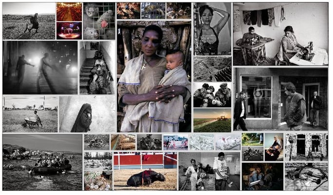 speglast líka í bílabaksýnisspeglum . Myndirnar sýna aðallega þá sem ekki geta borið hönd yfir höfuð sér og eru kúgaðir og þeim misþyrmt á einn eða annan hátt.